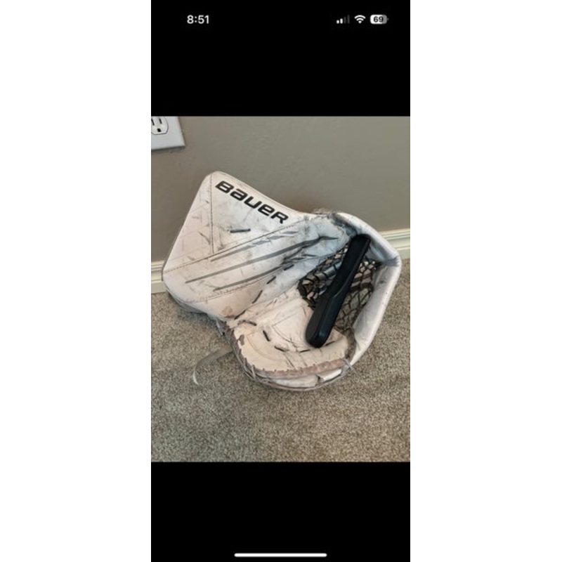 SpecificationsCategoryHockey > Goalie > Goalie Gloves & BlockersBrandBauerModelVapor 3XHand RegularType Glove OnlyCondition UsedAge Group SeniorColor WhiteRelease Year 2022Quantity1 available|||Seller DescriptionGood condition. Needs new lace on