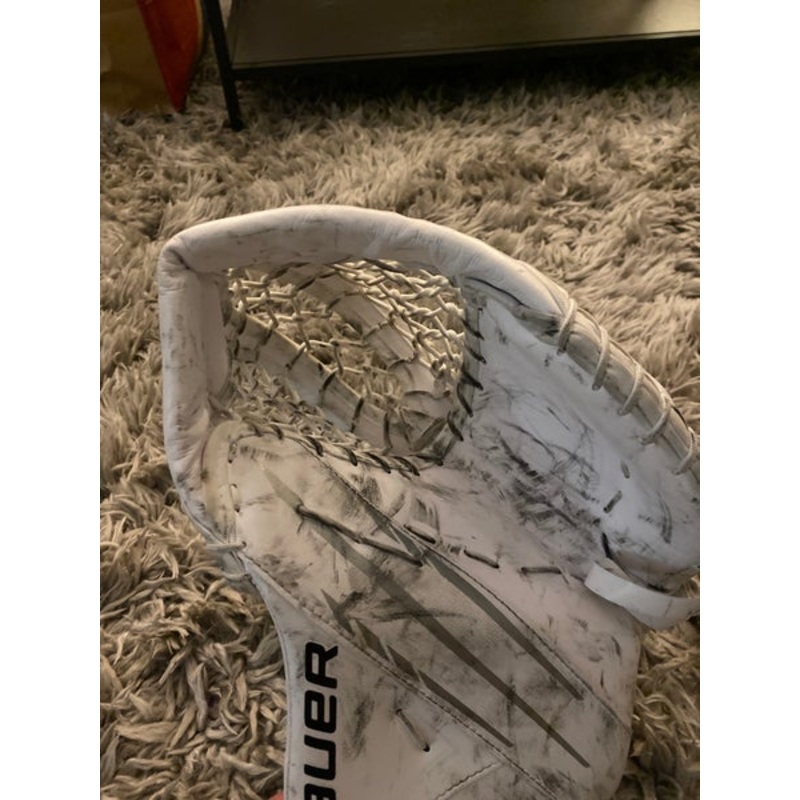SpecificationsCategoryHockey > GlovesBrandBauerModelVapor 3XColor WhiteAge Group Junior, YouthSize 9"Condition UsedPro Stock RetailQuantity1 available|||Seller DescriptionMint condition goalie catcher. No bad smell on the inside and the glove has b