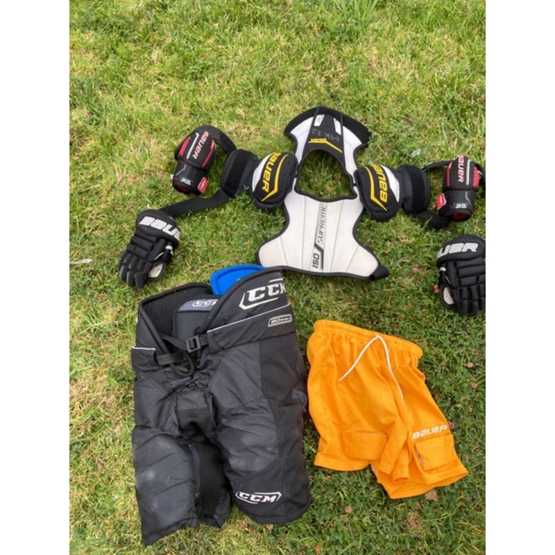 SpecificationsCategoryHockey > Starter Kits (Full Sets)BrandBauerCondition UsedAge Group JuniorQuantity1 available|||Seller DescriptionThis item is used but it is in good working condition. It has markings or blemishes consistent with frequent use but d