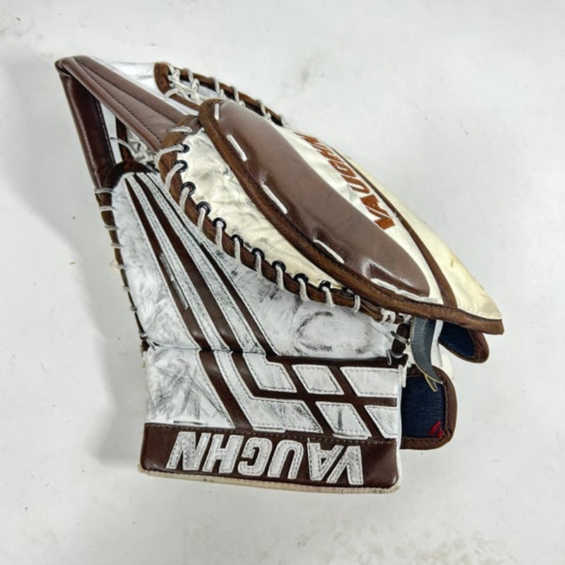 Used Regular Vaughn Velocity VE8 Pro Stock Goalie Glove (White/Brown)