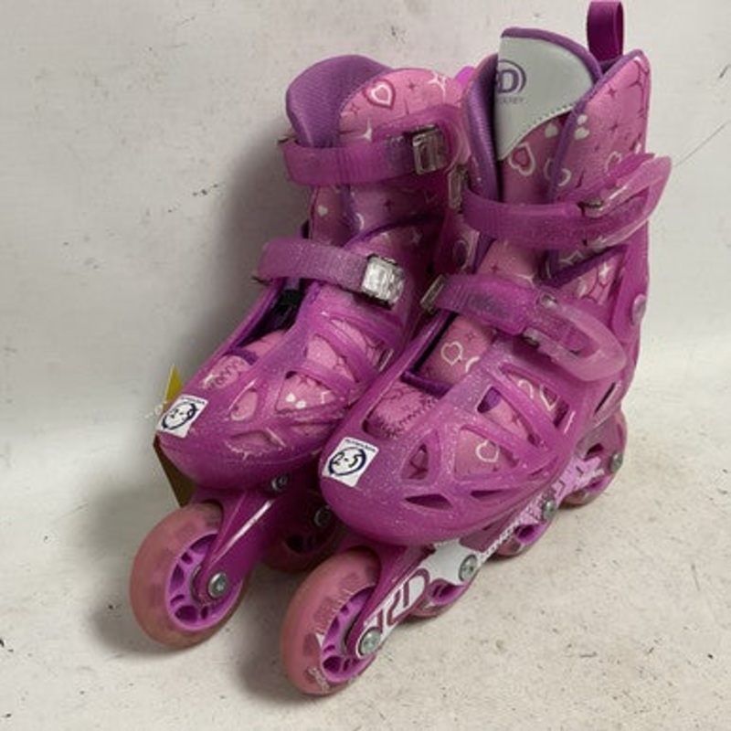 SpecificationsCategoryHockey > Inline, Roller & Street > Inline SkatesBrandOtherCondition UsedAge Group JuniorSkate Width UnknownSkate Size 2Quantity1 available|||Seller DescriptionUsed RollerDerby ADJ 2-5 Junior Rec Fitness Skates Pink Adjustabl