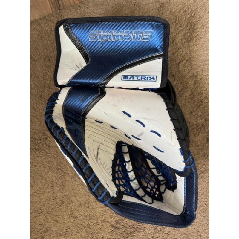SpecificationsCategoryHockey > Goalie > Goalie Gloves & BlockersBrandSimmonsModelMatrixAge Group SeniorHand RegularCondition UsedColor BlueType Glove OnlyQuantity1 available|||Seller DescriptionUsed Senior Regular Glove Simmons matrix catch glove