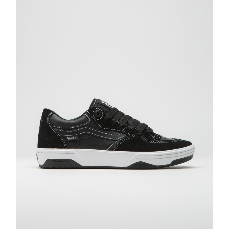Vans Rowan 2 Shoes in Black and White. Arriving as Rowan Zorillas second signature, this Vans Rowan 2 is designed with mixed suede and synthetic uppers with contrast stitching and a reshaped profile. Featuring a recycled VR3Cush sockliner, SICKSTICK compounding and ImpactWaffle technology, this black and white Vans Rowan 2 also features exposed DURACAP reinforcements with a perforated forefoot and a multi-tread rubber outsole. Finished with classic Vans side stripes, woven Rowan tongue labels and debossed V logos across each heel.