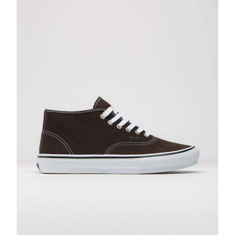 DescriptionVans Skate Authentic Mid VCU ShoesVans Skate Authentic Mid VCU Shoes in Dark Brown and White. Part of Vans Checkerboard Union project, this Vans Skate Authentic Mid is designed with suede uppers and contrast stitching. Featuring a new two-part f