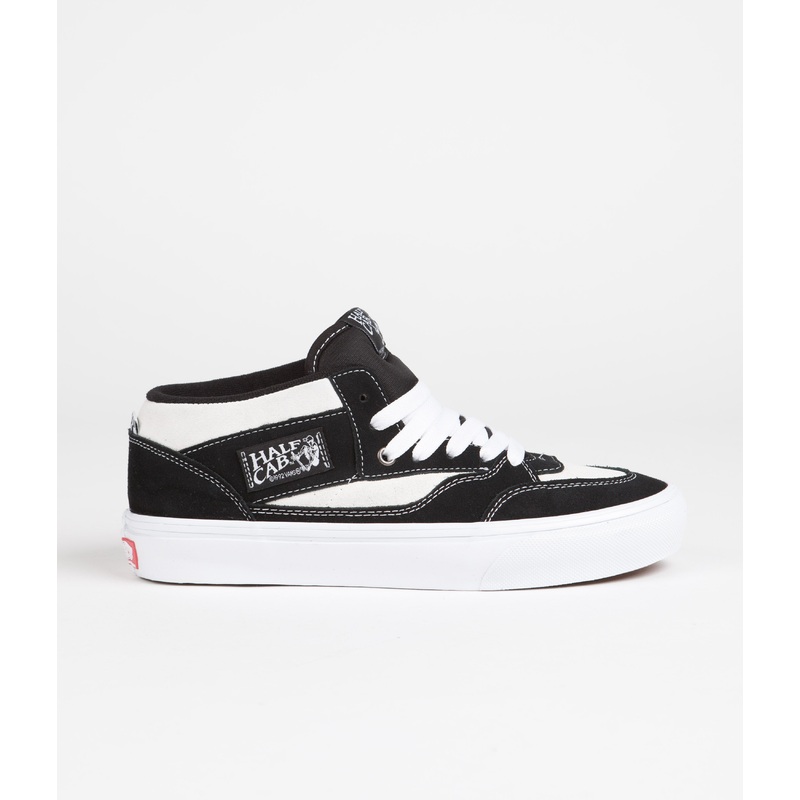 DescriptionVans Skate Half Cab '92 ShoesVans Skate Half Cab '92 Shoes in Black and Marshmallow. Seen here in a monochrome colourway with mixed material suede and textile uppers, this Vans Skate Half Cab 92 arrives as part of the brands on-going Skate Class
