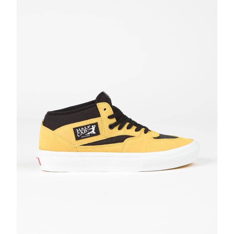 DescriptionVans Skate Half Cab ShoesVans Skate Half Cab Shoes Bruce Lee in Black and Yellow. Part of the brands Skate Classics collection and styled as an homage to the legendary Bruce Lee, this exclusive colourway features suede and textile uppers styled