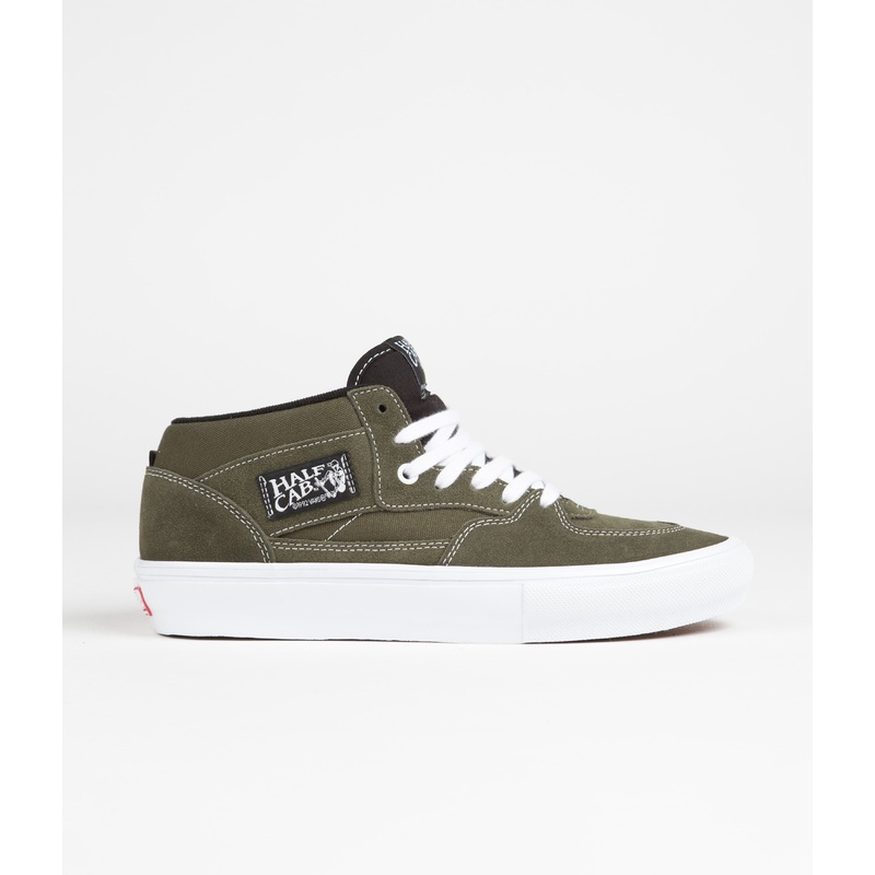 DescriptionVans Skate Half Cab ShoesVans Skate Half Cab Shoes in Dark Olive. Styled in a classic colourway with contrast stitching throughout, this Vans Skate Half Cab arrives as part of the brands on-going Skate Classics collection. Redesigned to feature