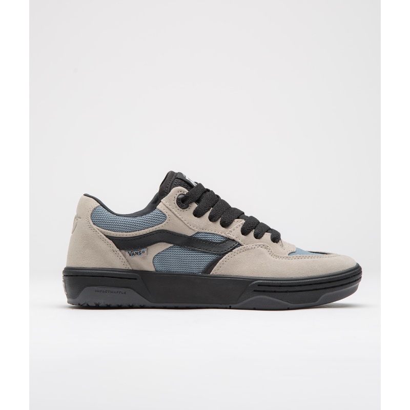 Rowan Zorillas signature Vans Skate Rowan 2 returns in a suede and synthetic upper built for skating. Exposed DURACAP reinforcements, a recycled VR3Cush midsole, and ImpactWaffle underfoot keep every session solid, while contrast stitching and printed pattern details add subtle style. Finished with a contrasting side stripe, woven checkerboard flag label, debossed heel logo, and classic rubber Waffle outsole.
