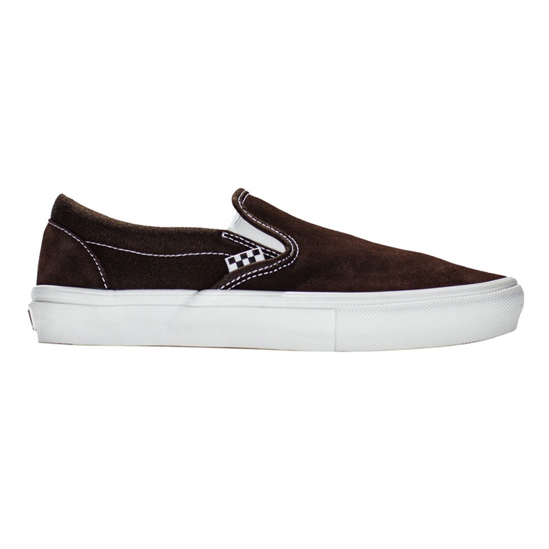 The new Skate Slip-Ons updated foxing tape and sturdy suede and canvas uppers give you the iconic look you want while bringing all the performance benefits skateboarders demand. And be sure to look for the new checkerboard flag on the side to guarantee that youre getting the best in style and modern skateboarding performance.