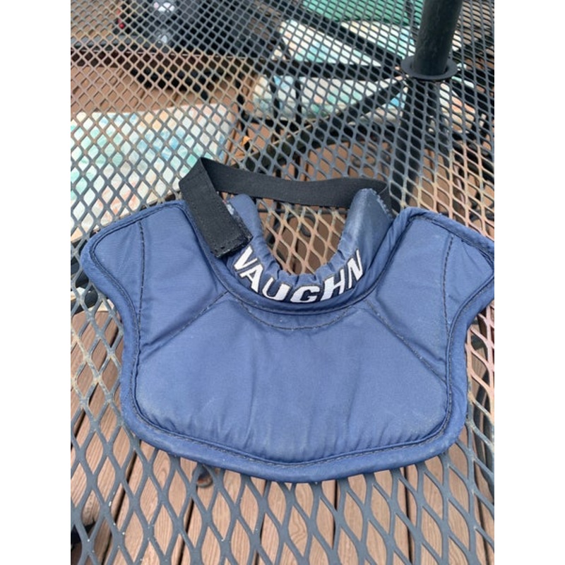 SpecificationsCategoryHockey > Protective > Neck Guards, Wrist Guards, Padded Shirts & OtherBrandVaughnColor BlueAge Group IntermediateCondition UsedQuantity1 available|||Seller DescriptionGreat neck guard for a young goalie. Leaves a lot of move