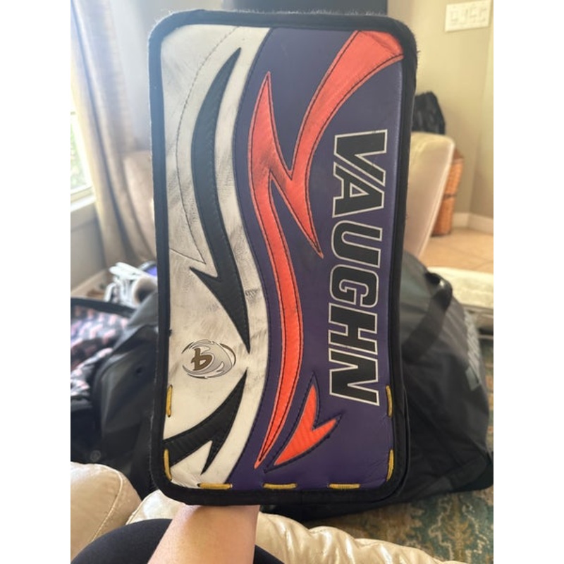 SpecificationsCategoryHockey > Goalie > Goalie Gloves & BlockersBrandVaughnColor PurpleAge Group SeniorHand RegularCondition UsedType Blocker OnlyQuantity1 available