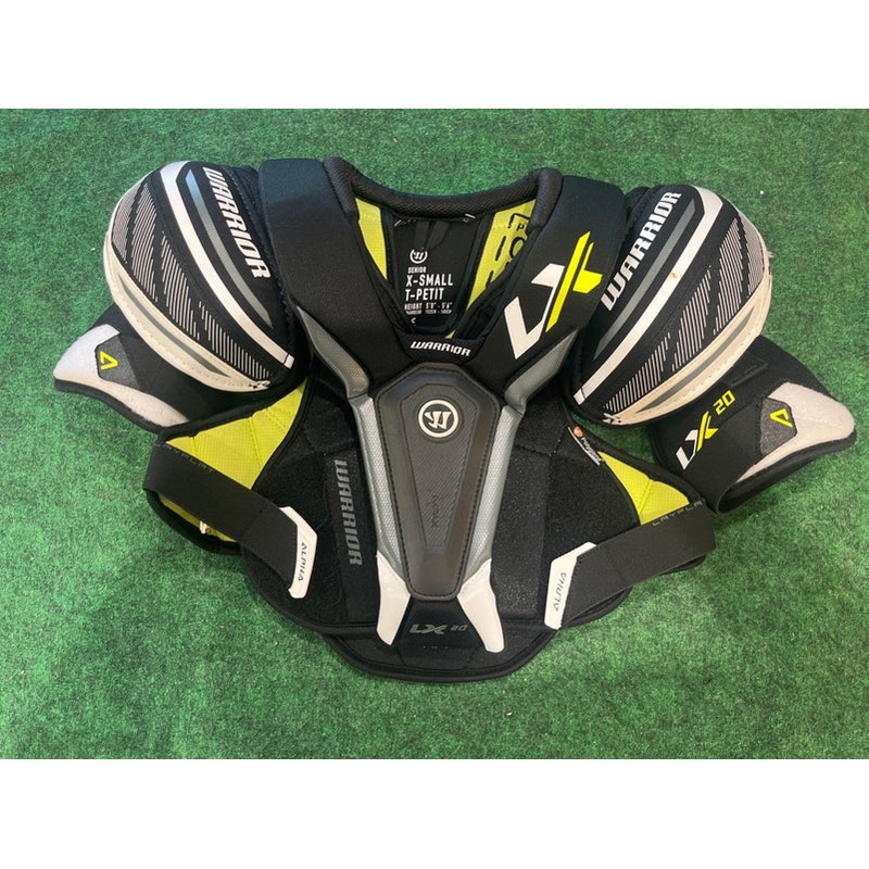 SpecificationsCategoryHockey > Protective > Shoulder PadsBrandWarriorModelALPHA LX 20Condition UsedPro Stock RetailSize XSAge Group SeniorQuantity1 available|||Seller DescriptionThis item offers proven performance at exceptional value. It shows the c