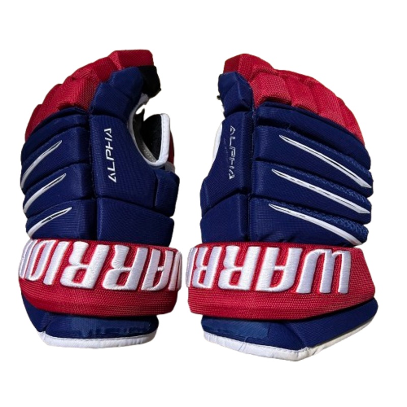 Warrior Alpha LX Pro – Used NHL Pro Stock Gloves – Montreal Canadiens (Red/White/Blue)