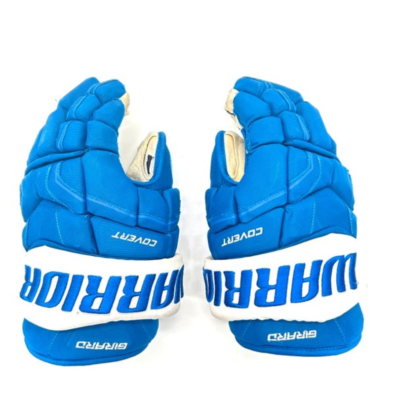 Warrior Covert QRE – Used NHL Pro Stock Hockey Gloves – Sam Girard (Blue/White)