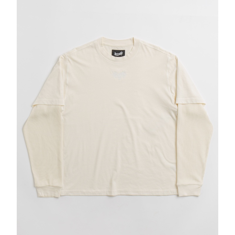 DescriptionWelcome Shard Layered Knit Long Sleeve T-ShirtWelcome Shard Layered Knit Long Sleeve T-Shirt in Bone. Designed with waffle-knit thermal sleeves, this relaxed fitting Welcome t-shirt is made from 100% cotton. Garment dyed with ribbed cuffs, this