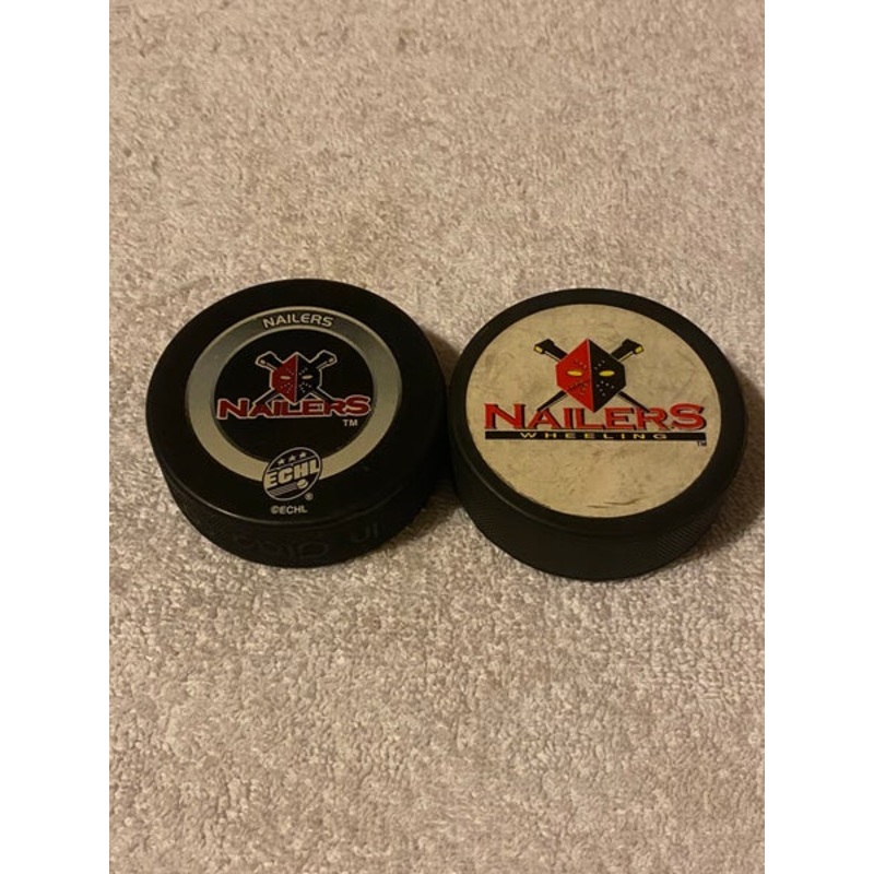 SpecificationsCategoryHockey > Training, Accessories, & Other > Pucks & BallsBrandOtherCondition NewQuantity1 available|||Seller DescriptionNew Wheeling Nailers ECHL Hockey 2 Logo Hockey Puck Bundle Buyer will receive both hockey pucks. Both