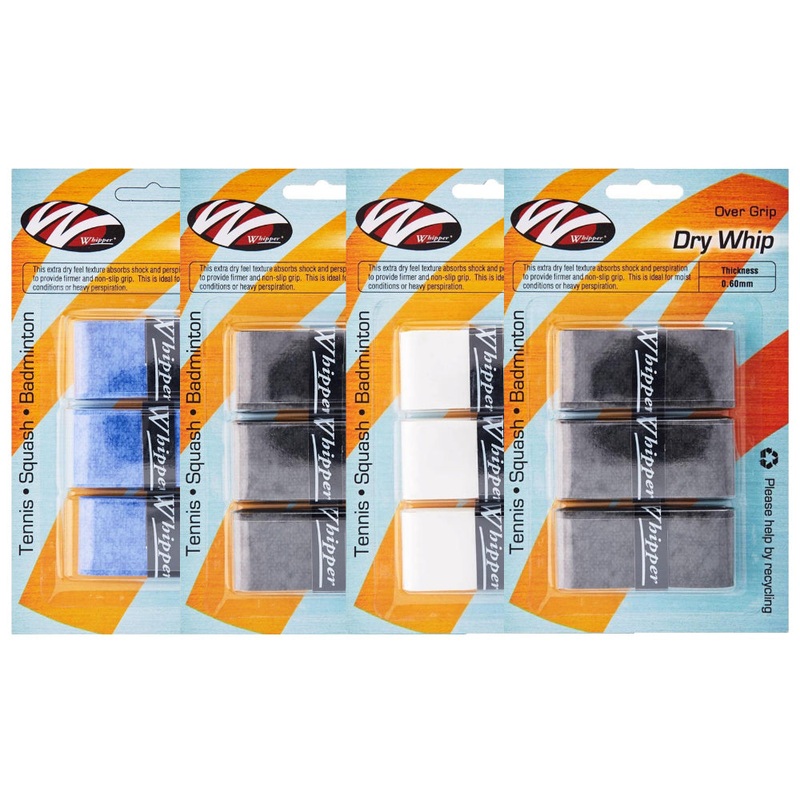 The Whipper Dry Whip is a 0.6mm thick overgrip. It can be used on badminton, tennis as well as squash racquets. An overgrip is mainly used to protect the original grip, or to customise your racquet further. This grip has an extra dry texture which absorbs shock and perspiration. Being plain smooth and non-slip, they provide a firm and comfortable feel for the hand.