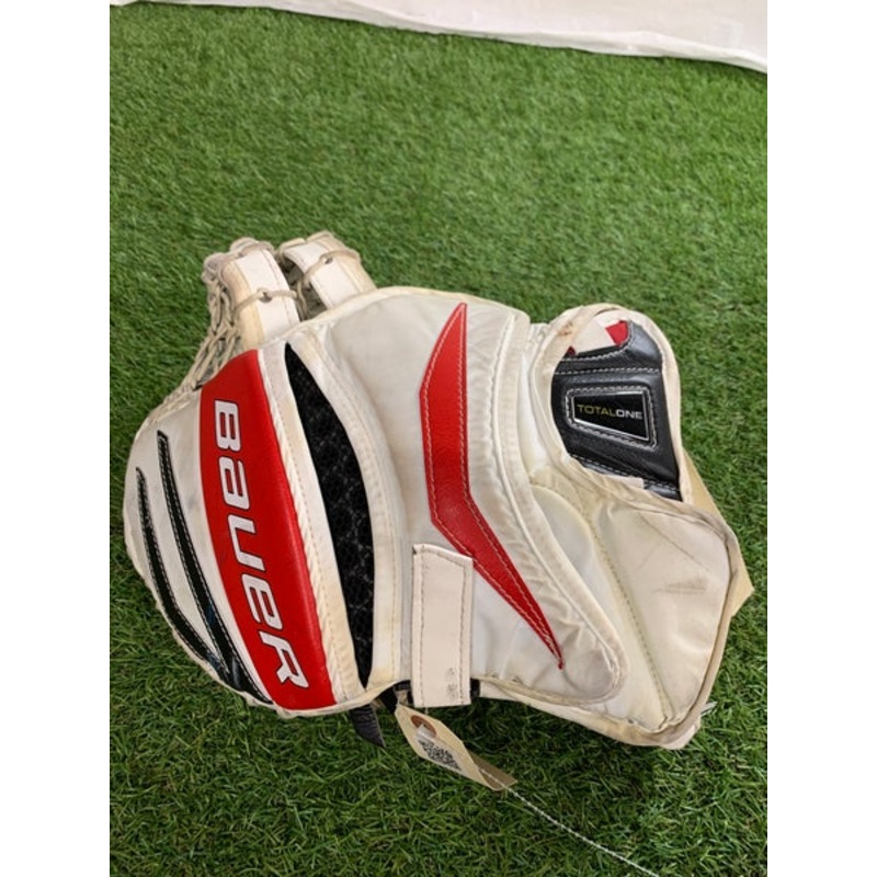 SpecificationsCategoryHockey > Goalie > Goalie Gloves & BlockersBrandBauerModelTotal OneCondition UsedPro Stock RetailType Glove OnlyAge Group IntermediateColor WhiteHand RegularQuantity1 available|||Seller DescriptionThis item offers proven perf
