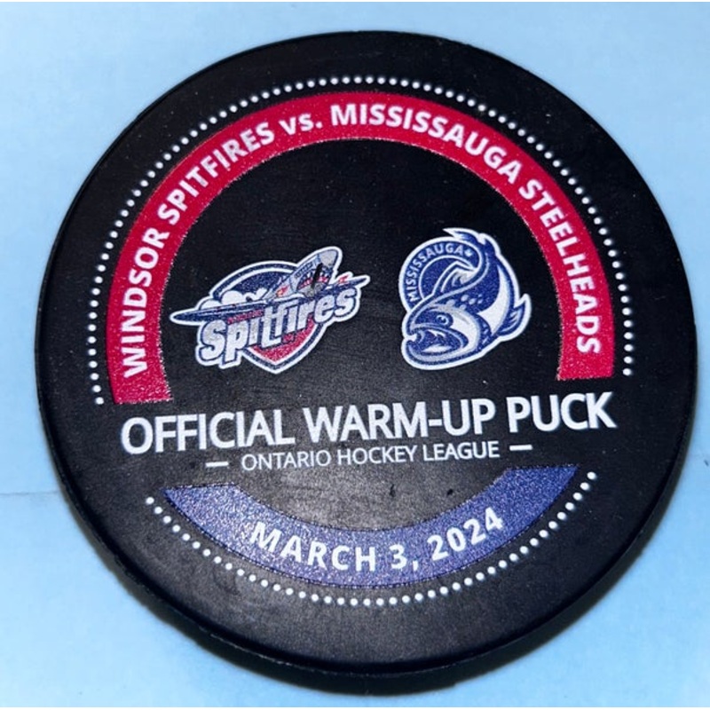 Windsor Spitfires vs Mississauga steelheads official warm up puck