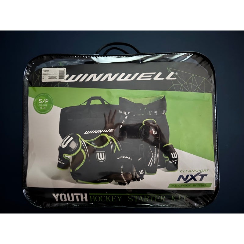 SpecificationsCategoryHockey > Starter Kits (Full Sets)BrandWinnwellAge Group YouthCondition UsedQuantity1 available|||Seller DescriptionThe Winnwell NXT Youth Hockey Starter Kit is a black and green hockey gear starter kit great for players new to the