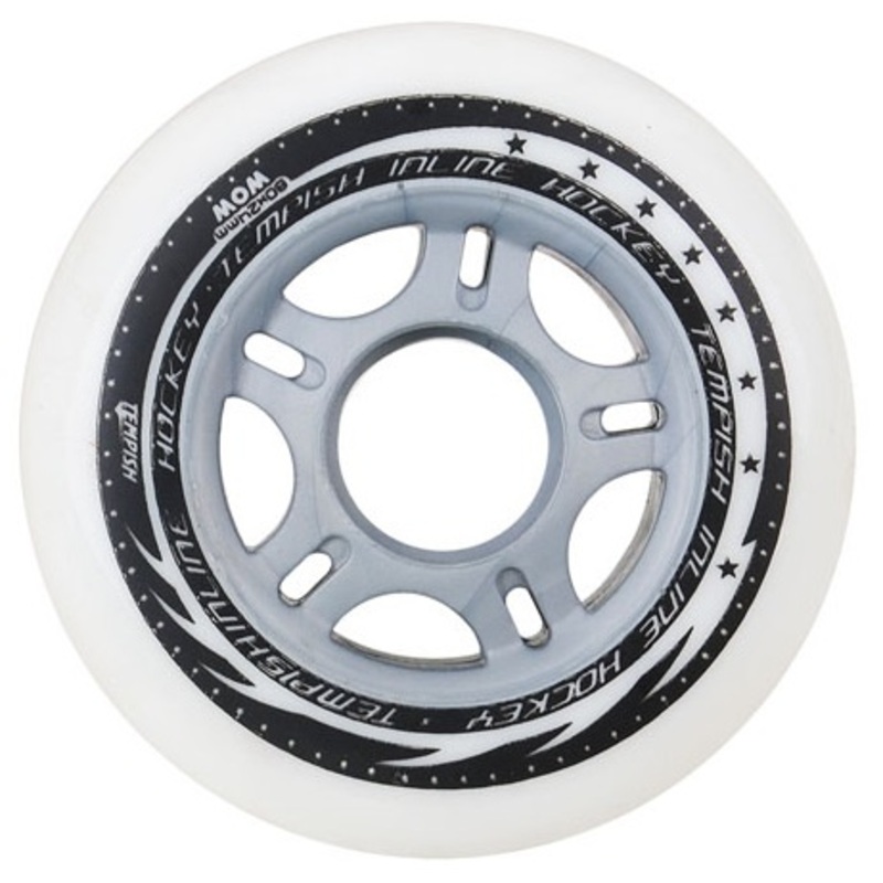 WheelsWOOWseriesare specially designedforin-linehockey playedon a plasticsurface.PUmaterialprovides the requiredadhesion, slip,speed, stability, durabilityandmaneuverability.The wheelsare produced in sizes:70, 72, 76, 80,84 mmHardness:78ASet includes4 piec