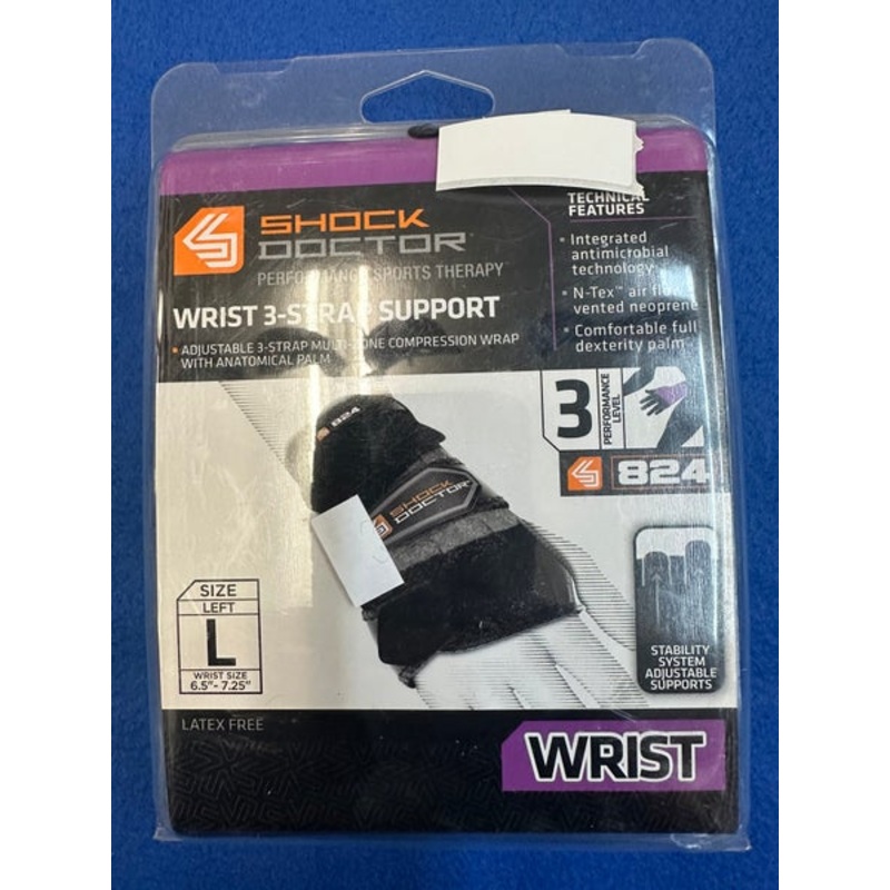SpecificationsCategoryHockey > Protective > Neck Guards, Wrist Guards, Padded Shirts & OtherBrandShock DoctorCondition NewColor BlackAge Group SeniorQuantityMore than 1 available|||Seller DescriptionWrist Large left shock doctor new check sizing