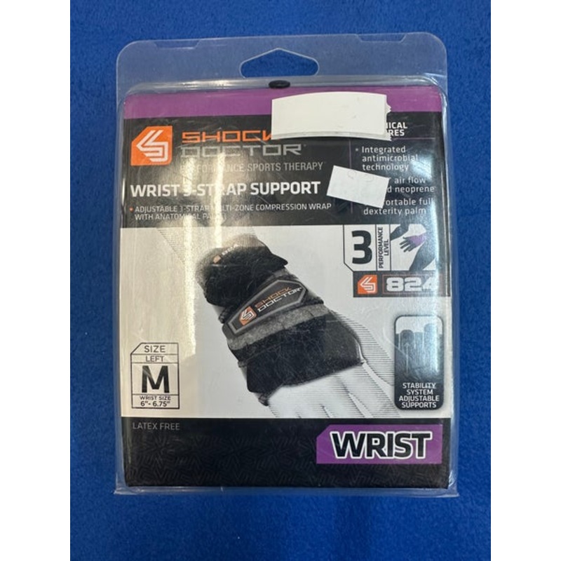 SpecificationsCategoryHockey > Protective > Neck Guards, Wrist Guards, Padded Shirts & OtherBrandShock DoctorCondition NewColor BlackAge Group SeniorQuantity1 available|||Seller DescriptionWrist Medium left shock doctor new check sizing in pictur