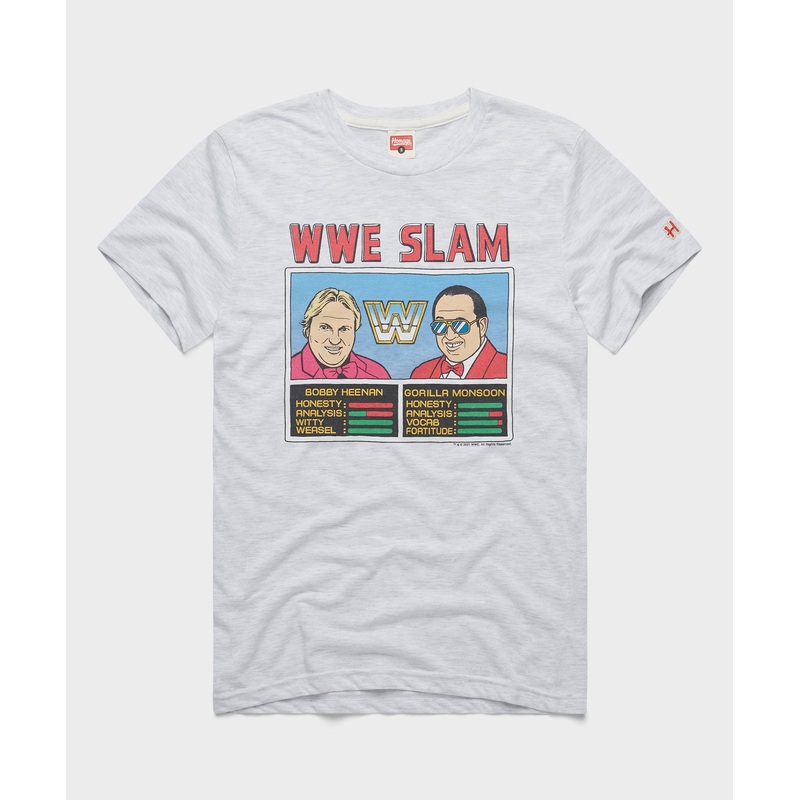 Boomshakalaka! The Brain and Gorilla, together again. The best color commentary the WWE has ever seen is back for a wrestling-inspired twist on our famous Jam tees. Is it the shoes? No, its the headsets. Pay homage.