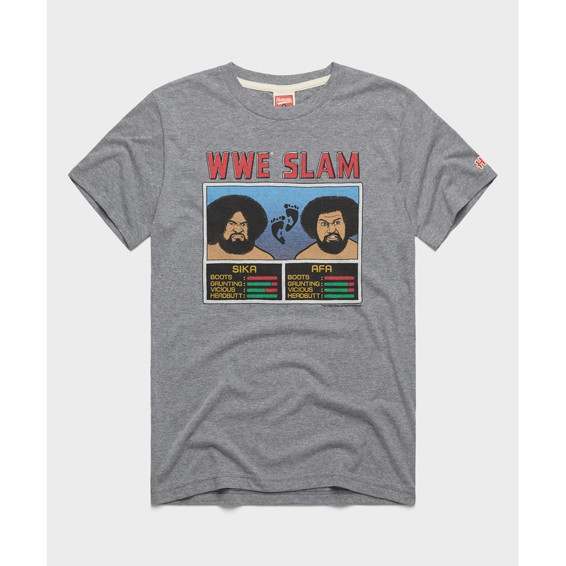 Boomshakalaka, its the Wild Samoans! Afa and Sika, together again. One of the greatest tag teams in WWE history is back for a wrestling-inspired twist on our famous Jam tees. Is it the shoes? No, its the singlets. Pay homage.