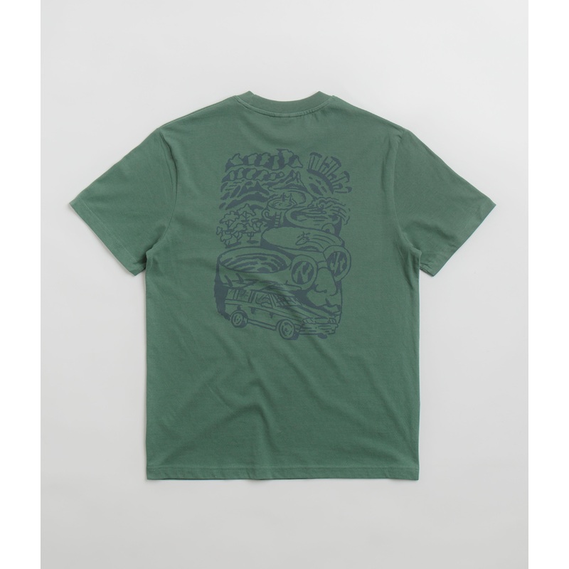 x Yallah T-Shirt in Green Bay. Relaxed fitting and designed in collaboration with Yallah Coffee, this t-shirt is made from 100% organic cotton. Finished in a shade of green with a rib knit collar, set-in sleeves, printed chest branding and with custom rear artwork by tattooist Josh Vyvyan.