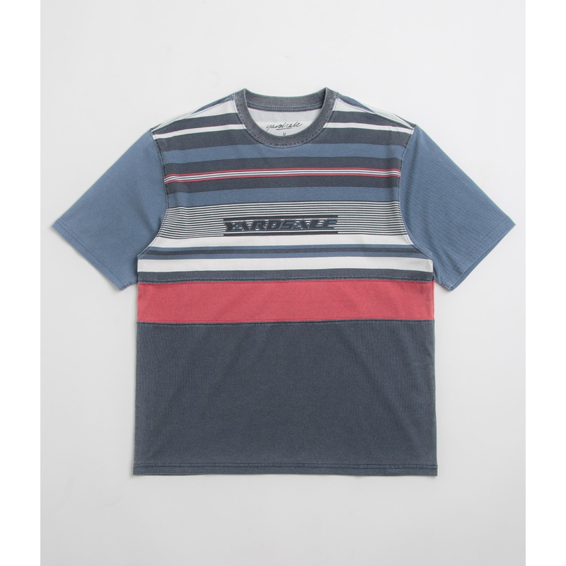 DescriptionYardsale Club T-ShirtYardsale Club T-Shirt in Blue. Made from 100% cotton, this regular fitting Yardsale t-shirt is designed with a jacquard stripe pattern. Finished in blue with a rib knit collar and a screen printed Yardsale chest logo.Product