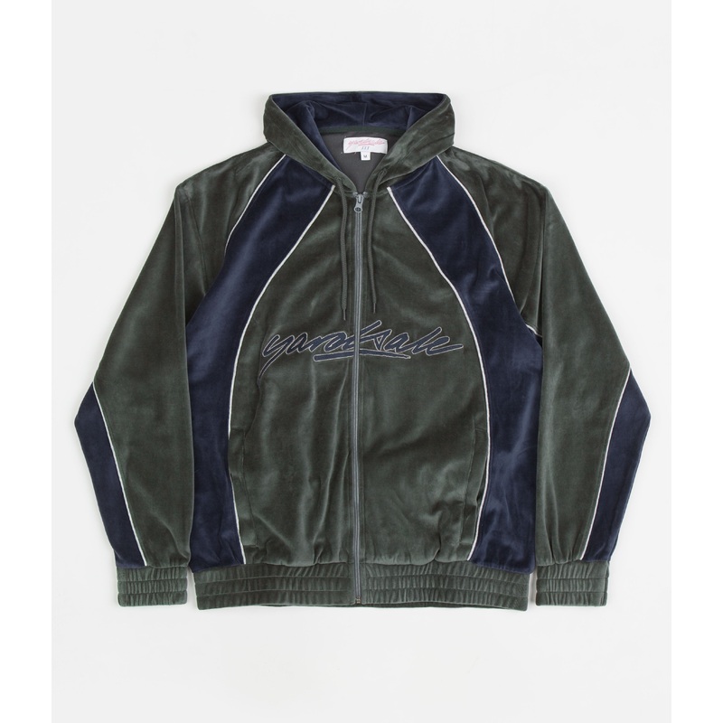 Yardsale Gem Velour Full-Zip Hoodie – Green / Navy