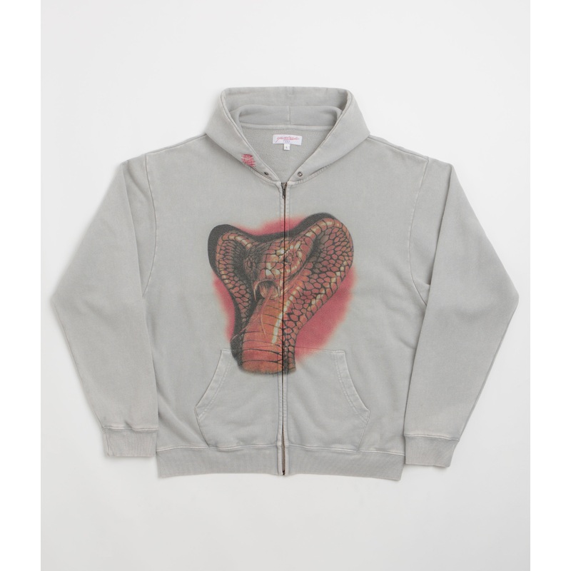 Yardsale Kobra Hoodie in Grey. Made from 100% cotton with a split panel hood, this Yardsale hoodie is tailored to a relaxed fitting. Featuring a full length zipper fastening, two front pockets and ribbed cuffs, this grey Yardsale hoodie is finished with a screen printed chest graphic and a custom YS zip pull.