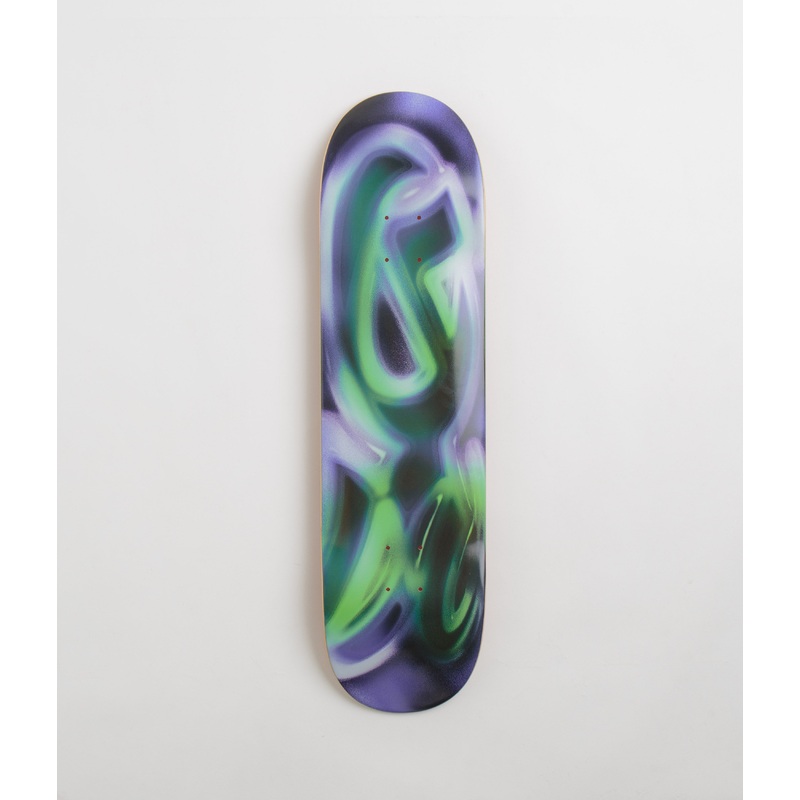 Yardsale Party Deck in 8.375″. Crafted from 100% 7-ply maple, this Yardsale deck arrives as part of the brands latest hardware release. Featuring a width of 8.325 with an assorted wood veneer topside and with an abstract neon underside print.