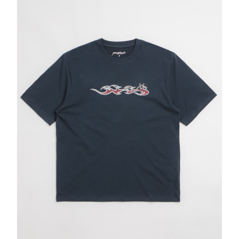 DescriptionYardsale Phantasy Flame T-ShirtYardsale Phantasy Flame T-Shirt in Navy. Made from 100% cotton, this block tone Yardsale t-shirt is designed with a classic crew collar and a straight hem. Finished in navy with a screen printed chest graphic.Produ