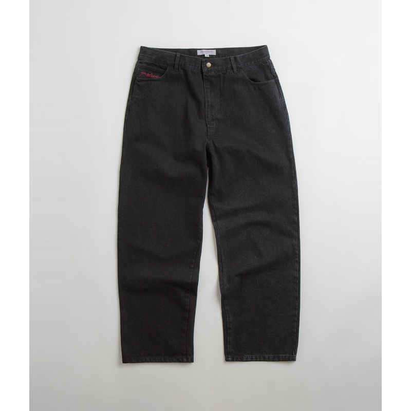 Yardsale Phantasy Jeans in Washed Black. Tailored to a loose fitting with a straight leg cut, these Yardsale jeans are made from 100% cotton denim. Featuring contrast stitch details, a classic belt loop waist and a single button secured zipper fly, these black Yardsale jeans are finished with two waist pockets, two rear patch pockets and embroidered YS branding.