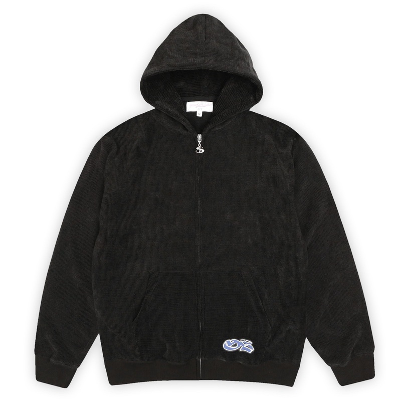 Introducing London based brand Yardsale to Pass~Port Store & Gallery. The Sprayed Waffle Hood is an all-over sprayed zip hooded sweatshirt and features a drawstring hood and a YS spray logo at pocket.