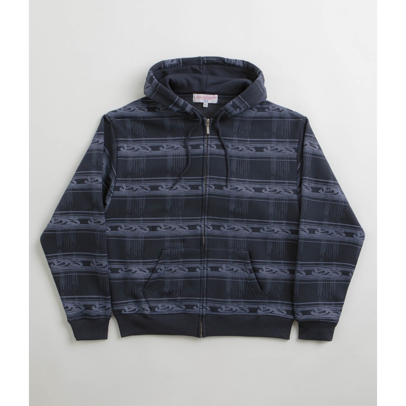 DescriptionYardsale Syphon HoodieYardsale Syphon Hoodie in Black and Blue. Designed with an all-over YS print, this regular fitting Yardsale hoodie is made from a cotton-polyester blend with a drawstring adjustable hood. Featuring a full length zipper, rib