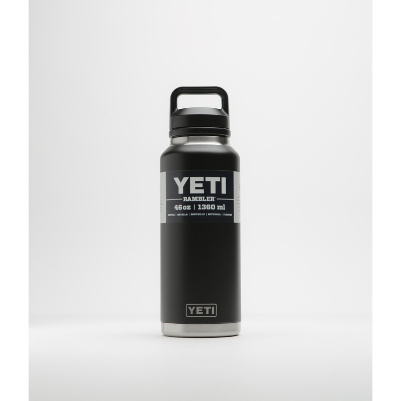 DescriptionYeti Chug Cap Rambler Bottle 46ozYeti Chug Cap Rambler Bottle 46oz in Black. Dishwasher safe and made from 18/8 stainless steel, this Yeti Rambler Bottle is designed with double-wall vacuum insulation. Featuring a removable Chug Cap topper and a