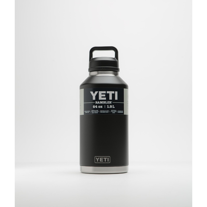 DescriptionYeti Chug Cap Rambler Bottle 64ozYeti Chug Cap Rambler Bottle 64oz in Black. Providing maximised hydration with a fluid capacity of up to 1.9 litres, this Yeti Rambler Bottle is made from 18/8 stainless steel with double-wall vacuum insulation.