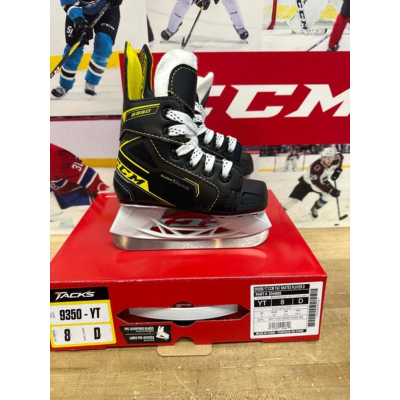 SpecificationsCategoryHockey > SkatesBrandCCMModelTacks 9350Condition NewSkate Size Youth - 8Age Group YouthQuantityMore than 1 available|||Seller DescriptionYour young hockey players will love the comfortable boot-shaping system and brushed microfiber