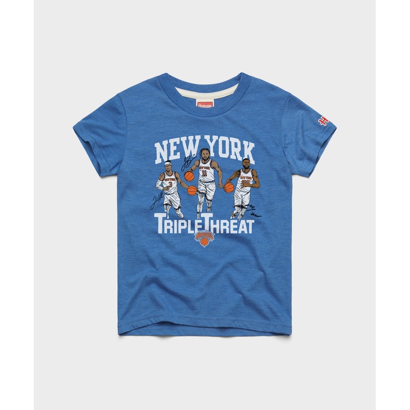Triple threat! Three of the Knick greatest assets, together in one super-soft tee. Josh Hart, Jalen Brunson and Mikal Bridges: dunk on em with a trio of New York superstars, comin atcha full force. Pay homage.