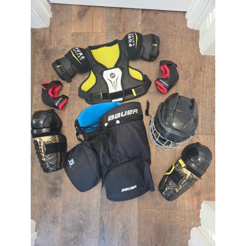 SpecificationsCategoryHockey > Starter Kits (Full Sets)BrandOtherAge Group YouthCondition UsedQuantity1 available|||Seller DescriptionYouth Large hockey starter kit. Includes youth large Bauer Prodigy pants, youth large pure hockey shoulder pads, youth