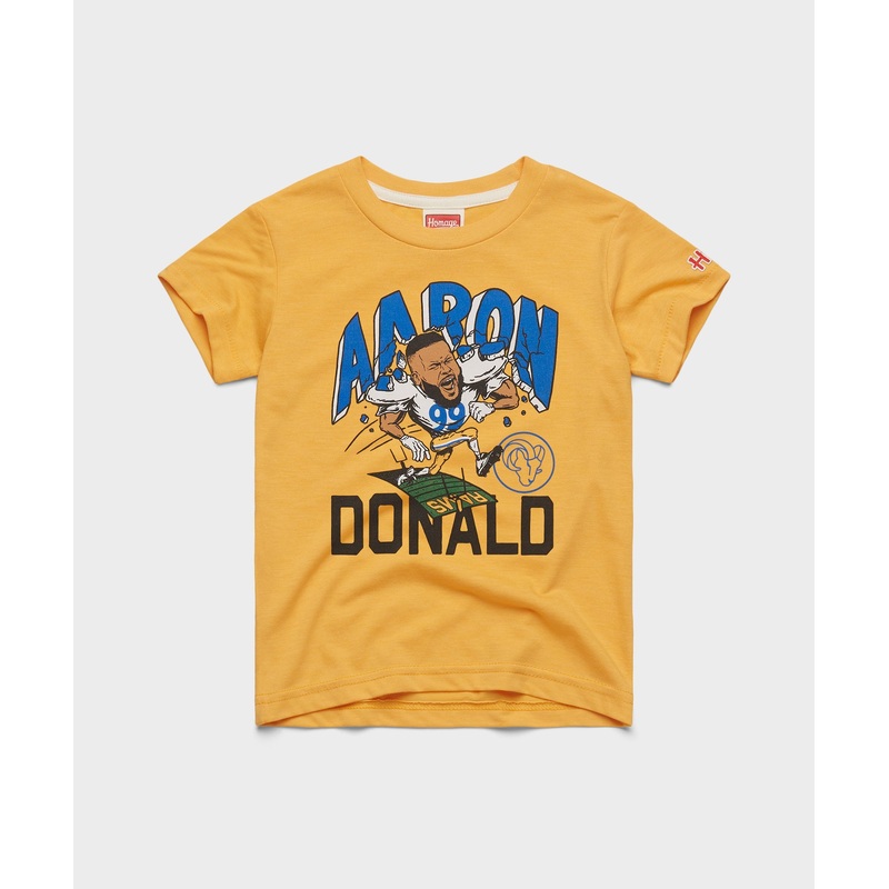 Big heads, bigger names: the HOMAGE x NFL caricature collection is here. Retro and ready for anything, our kids super-soft tee reps Los Angeles Rams superstar Aaron Donald in pen n ink. Pay homage.