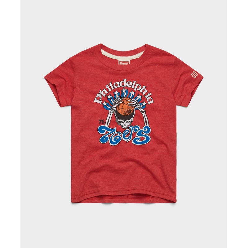 Steal your face: Philadelphia 76ers now have their very own skull, for the littlest fans. Get Grateful with a super-soft Deadhead-approved youth look for the heart of hoops season. Pay homage.