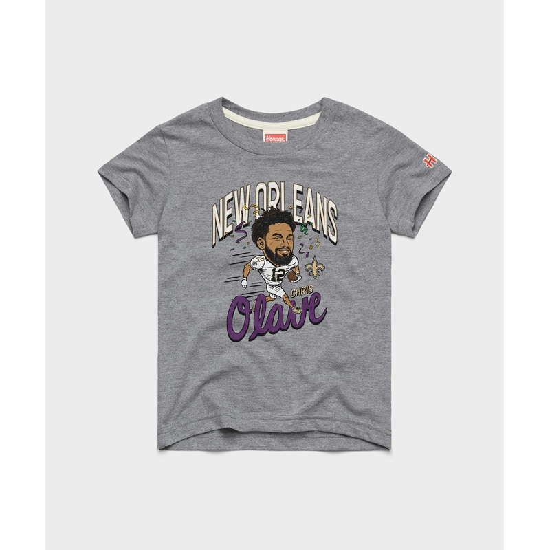 Big heads, bigger names: our super-soft Chris Olave kids tee is ready for primetime. Rep the New Orleans Saints in style, and pay homage.