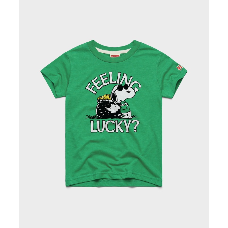 Feel lucky with this super-soft, St Patricks Day inspired kids Peanuts look. Get a wee bit o good fortune with the classic comic strip, and pay Omage.