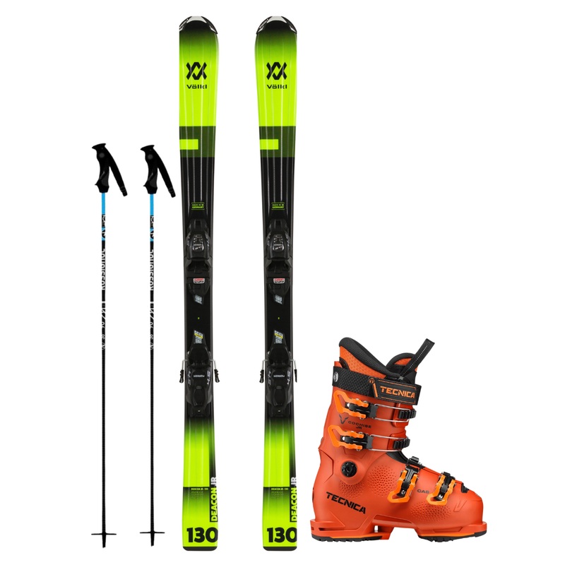The selection of skis includes the pictured models as well as 5-10 other models by brands like Volkl, Blizzard, Rossignol, and more.