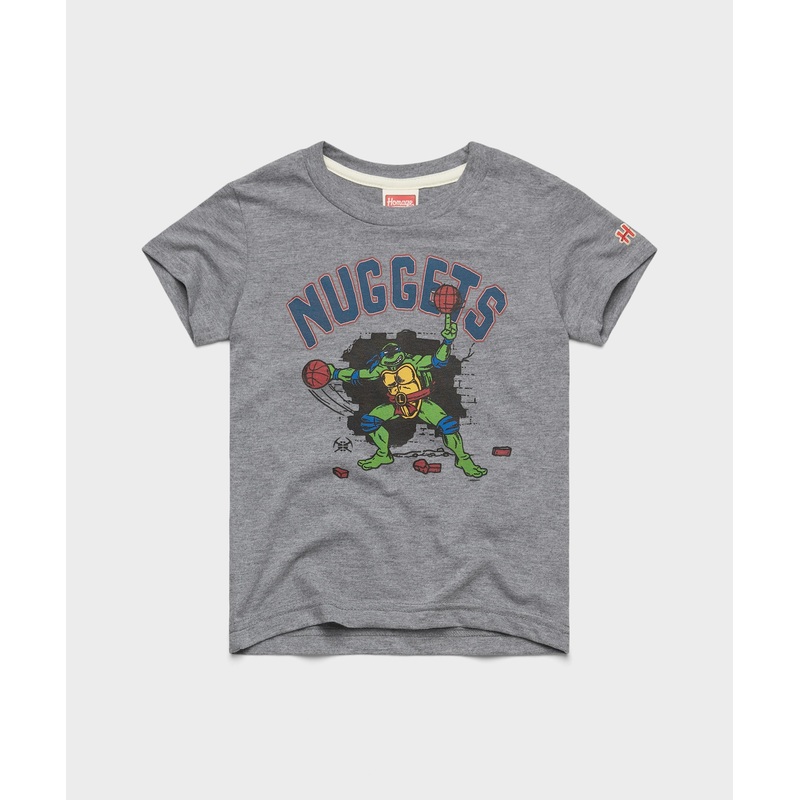 Check it out, dudes: were bringing the Cowabunga to the courts with a totally radical new TMNT x NBA mashup. A kids super-soft, turtle-poweredDenver Nuggets tee, ready to ball (and crush some pepperoni pizza). Bodacious!