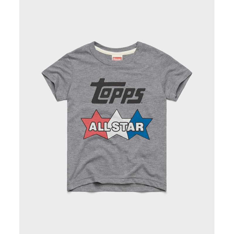 Topps is tops - especially an All-Star Topps. Rep the one and only baseball card heroes with a super-soft youth tee for tearin open wax packs, collecting cards, and the Real one, Topps. Pay homage.
